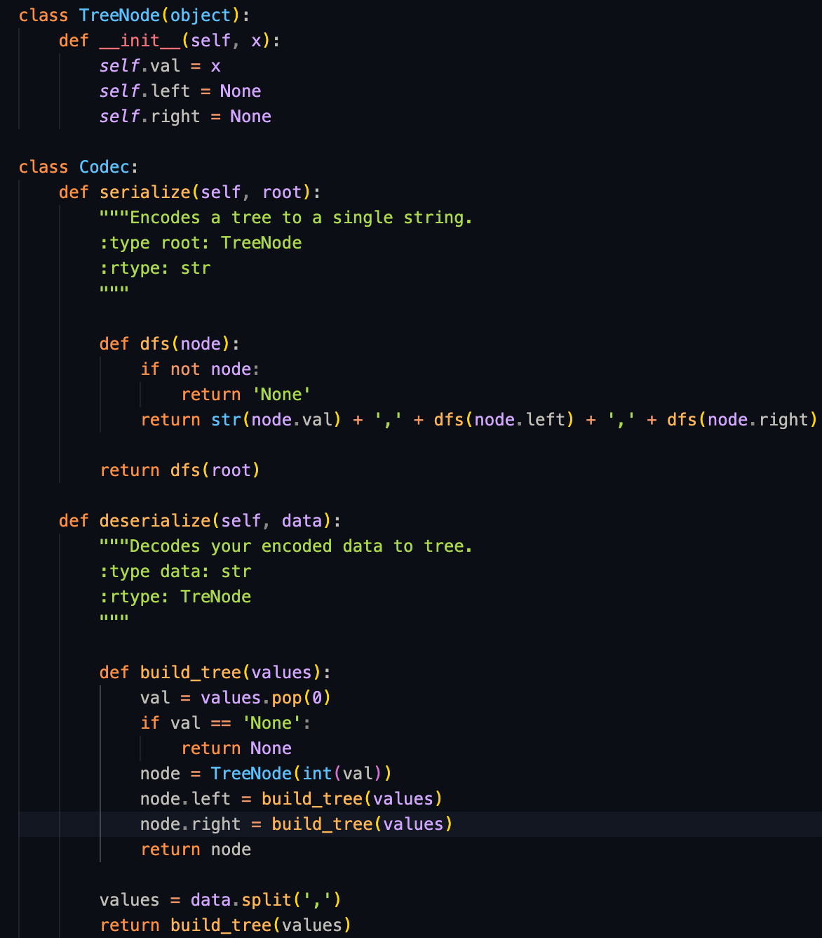 Design an algorithm to serialize and deserialize a binary tree. There is no restriction on how your serialization/deserialization format is.